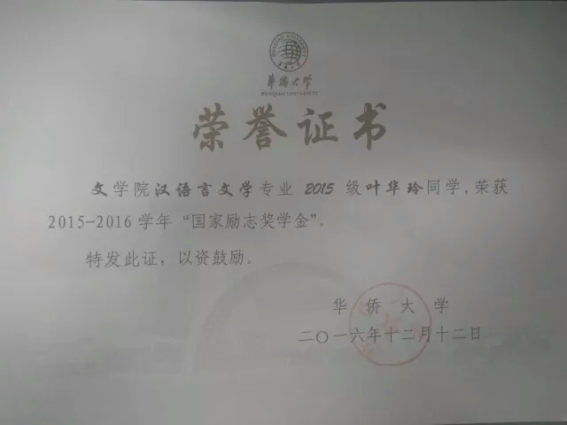 2016-2017、2015-2016学年“华侨大学三好学生”
