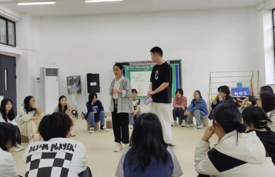 活动伊始,主持人带领同学们依次进行了暖场破冰游戏——大风吹、小风吹、台风吹。这些游戏不仅考验了大家的思维灵敏度,同时单轮游戏出局的同学们带来的才艺表演也给现场增添了欢笑声。同学们在轻松愉悦的氛围中放松身心,快速进入状态。