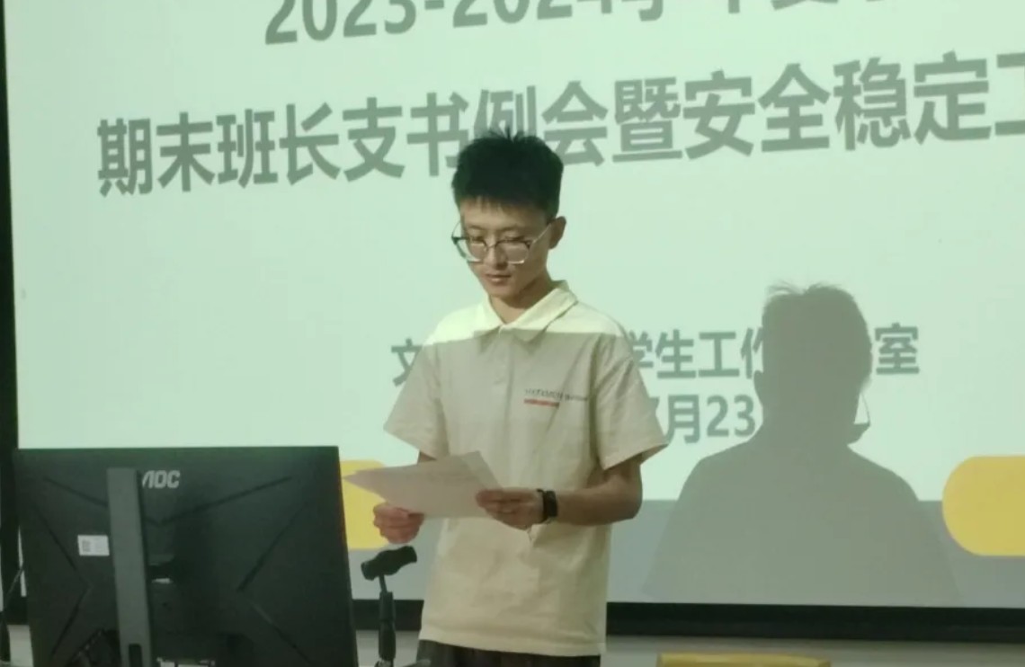 随后,杨老师在会上指出,各班班长支书与其他班委要关注班级动态,做好学生和老师间的联系员,将假期内的安全稳定放在第一位。另外,杨老师强调,各班班委应多关注留校同学尤其是境外留学生的实时动态与心理状态;针对预备返乡的同学,也应当关注他们的返乡时间、方式与暑期动向。